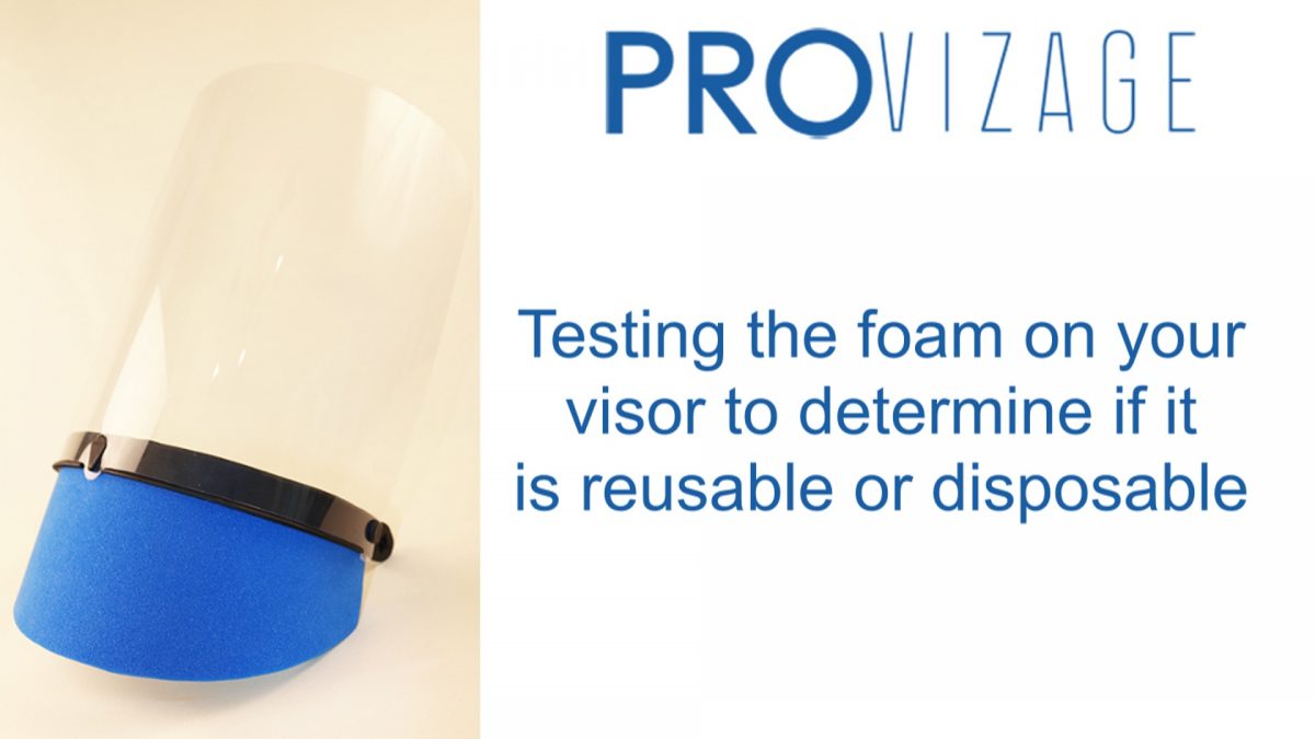 Reusable visors have a closed cell foam, like the collar on the Provizage visor. This means it is not porous, but water repellent. Bacteria and viruses are on the surface only and will be killed when the viricidal / bacterial wipe comes into contact with them. You can wipe the visor down and be sure you can disinfect to HTM01-05 effectively, preventing cross contamination and reusing your visor time and time again.