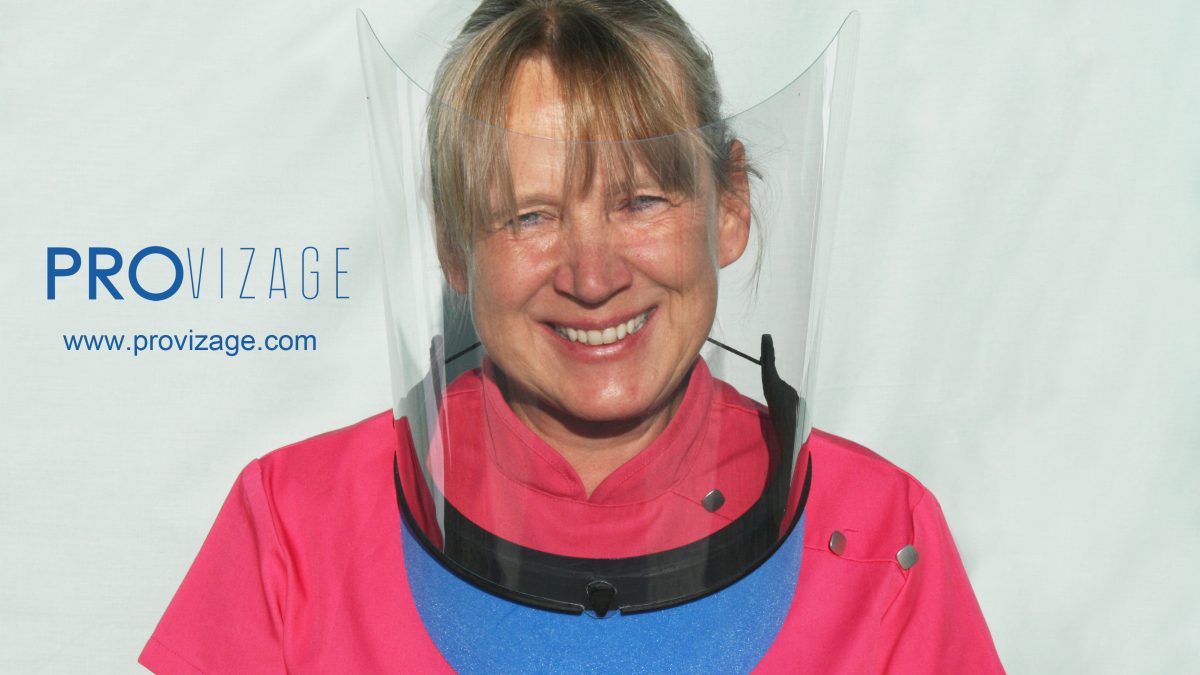 This video shows you how to wear your Provizage visor. It's simple to wear and protects your neck and face from splashes and splatter. Put your mask and glasses on, if you wear them, first. Then put the visor over your head and position the collar on your chest in the area of your clavicle. Adjust the slider on the cord at the back of your neck to hold the visor in position. The visor is also designed so you can wear your loupes comfortably
